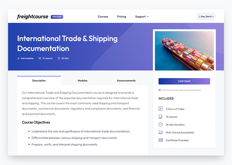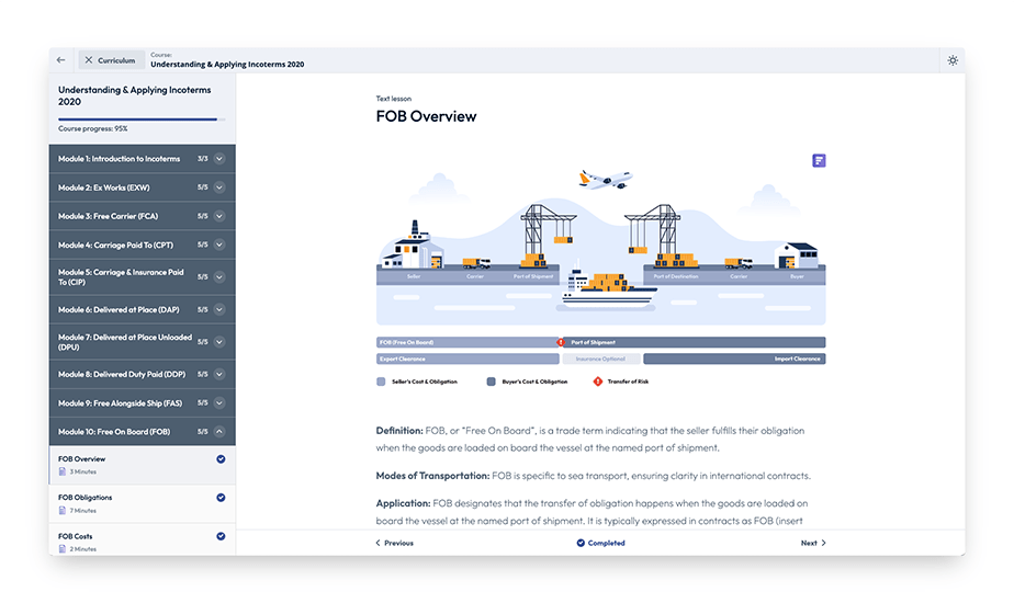 I had an incredible learning experience! The interactive activities and engaging materials really enhanced my understanding of freight forwarding. The step-by-step explanations were clear and made it easy for me to understand.