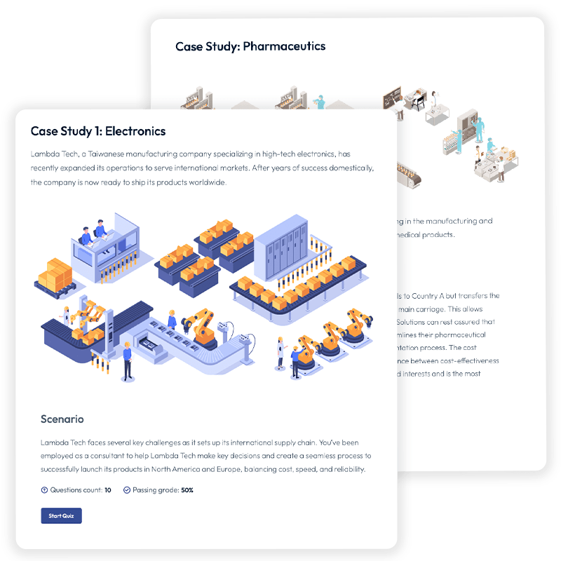 Tackle real-world challenges with our case studies. These exercises push you to apply your knowledge, and solve complex scenarios.